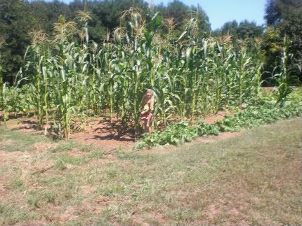 This is the corn. It is just about ready. The ears are in full tassel. This is dent corn, for the chickens, we planted sweet earlier in the season.